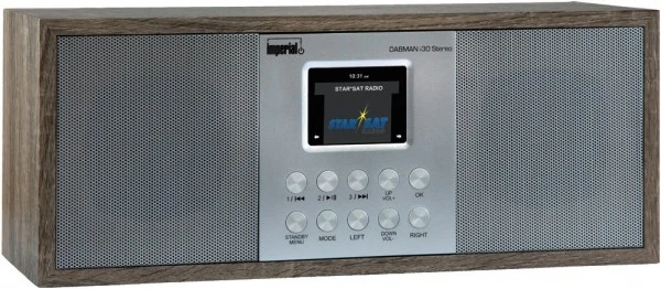 Der DABMAN i30 Stereo vereint DAB+, FM und Internetradioempfang mit schicker Retro-Optik. Der Hybridalleskönner überzeugt durch Top-Stereoklang, das 2.8‘‘ (7.1cm) TFT Farbdisplay gibt nützliche Hintergrundinfos gestochen scharf wieder. Das Radio verfügt über UPnP, DLNA und Bluetooth. Der DABMAN i30 Stereo kann sowohl per Fernbedienung als auch per Smartphone über die kostenlose AirMusic Control App (für Android und IOS erhältlich) ferngesteuert werden. Viele benutzerfreundliche Funktionen wie Wecker, Sleeptimer, Favoritenlisten, eine mehrsprachige Menüführung, Multikey oder das Relax-Sound-Angebot runden den Funktionsumfang ab und machen den DABMAN i30 Stereo zu einem herausragenden Multifunktionsradio.