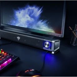 Eleganter horizontaler Gaming-Lautsprecher, für perfekte Integration unter jedem PC-Monitor oder TV-Bildschirm konzipiert.